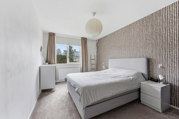 Slaapkamer 2: De master bedroom is aan de achterzijde gelegen. De ruimte is geschikt voor het plaatsen van een tweepersoonsbed en diverse kasten. De afwerking bestaat uit vloerbedekking, gestuukte- en behangwanden en een spuitwerkplafond.