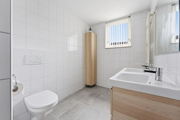 Toilet: De toiletruimte is volledig betegeld en voorzien van een zwevend toilet, mechanische ventilatie en een fonteintje.
