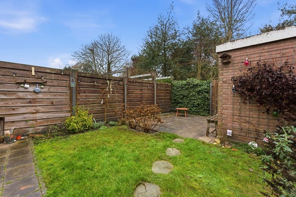 Achtertuin: Deze heerlijke achtertuin (afm. ca. 7.85 x 5.15) heeft een fijne ligging. Achter de tuin zie je alleen maar groene bomen en struiken waardoor je heel veel privacy ervaart. De tuin is aangelegd met sierbestrating en tuinborders en je kan er een gezellig zitje maken. De tuin is achterom te bereiken en is voorzien van een elektra- en wateraansluiting. Een heerlijke plek om te vertoeven.