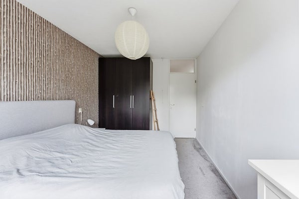 Slaapkamer 1: Slaapkamer één ligt aan de achterzijde van de woning en is goed in te delen. Door de rechte wanden is de ruimte praktisch in gebruik. De slaapkamers zijn voorzien van een hor voor de ramen. De afwerking bestaat uit een laminaatvloer, gestuukte wanden en een plafond met spuitwerk.