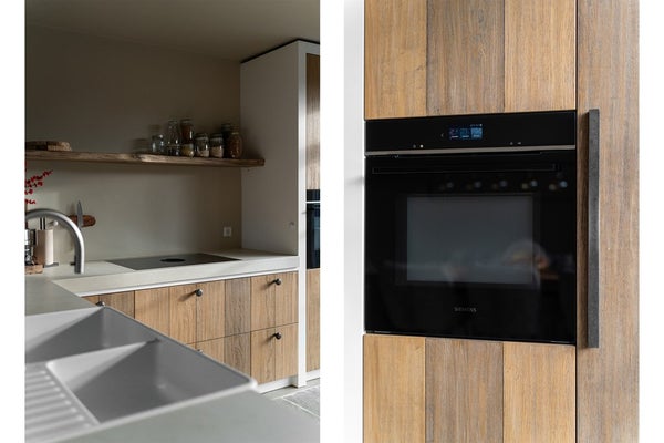 Keuken: De prachtige keuken staat in open verbinding met de woonkamer en is ingericht met een kook- en zitgedeelte. Aan de bar is ruimte om aan te schuiven tijdens het koken. De keuken is voorzien van een BORA inductiekookplaat met recirculair afzuigsysteem en diverse Siemens apparatuur, waaronder een oven-magnetroncombinatie, koelkast, Quooker en vaatwasser. Aan beide zijden is kastruimte aanwezig, wat zorgt voor een praktische indeling en een opgeruimd geheel.