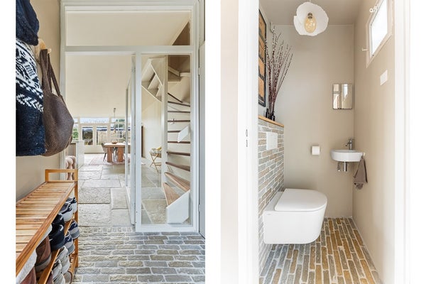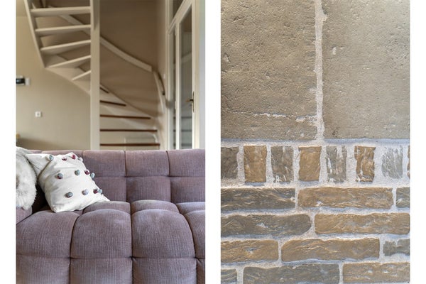 Entree: De gezellige hal biedt toegang tot de meterkast, de toiletruimte en de woonkamer. De afwerking bestaat uit een RAW STONE vloer van handgebakken klinkers/waaltjes, gestuukte wanden en een gestuukt plafond.