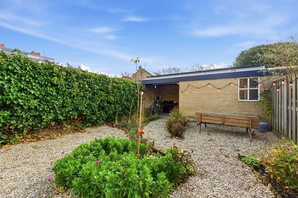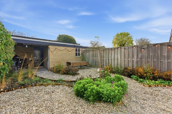Achtertuin: De achtertuin (ca. 9,90 x 6,10 m) ligt op het zuidoosten en is ingericht met tuinborders en grind. De tuin beschikt over een elektrisch zonnescherm voor schaduw op zonnige dagen. Er is een wateraansluiting aanwezig en de stenen schuur is voorzien van buitenverlichting. De achterpui geeft de gevel een verzorgd aanzicht. Gezellige lampjes creëren hier een gezellige sfeer.