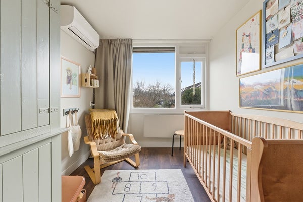 Slaapkamer 2: Slaapkamer twee is gelegen aan de achterzijde van de woning. De ruimte is voorzien van airconditioning en een woningbreed zonnescherm. Momenteel is de kamer ingericht als leuke kinderkamer, maar welllicht wil jij het inrichten als werkkamer. Net wat je nodig hebt.