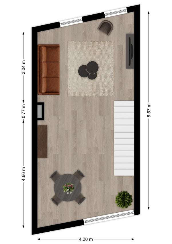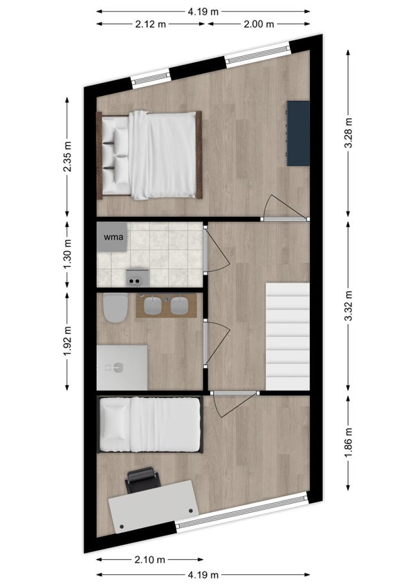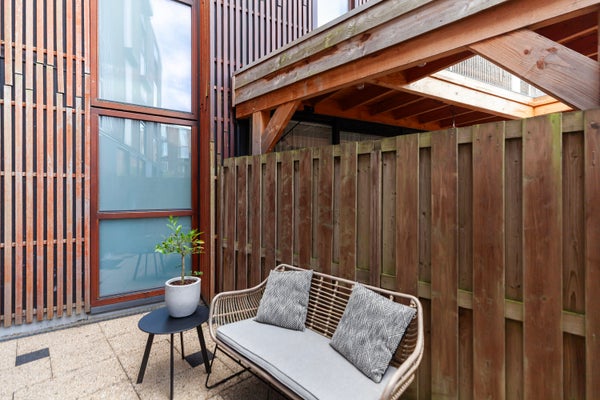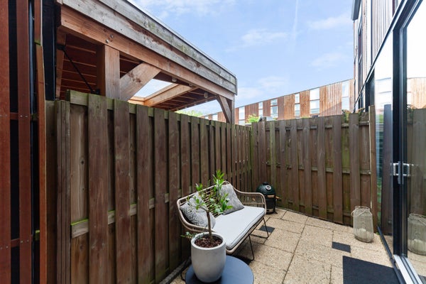 - De tussenwoning heeft een woonoppervlakte van 104 m² en beschikt over 3 kamers, waarvan 2 slaapkamers;