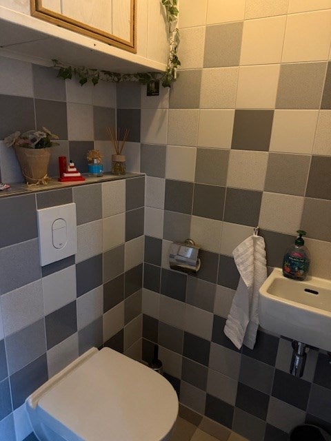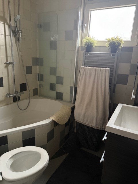 Badkamer met bad, wastafelmeubel en toilet ca 2.10m x 1.75m