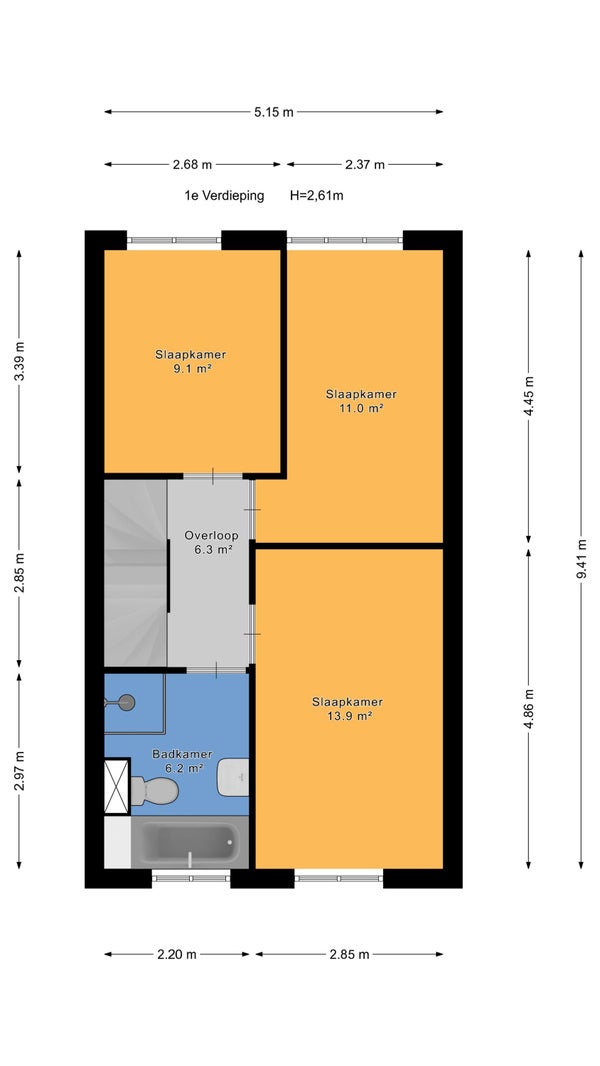 • De tussenwoning heeft een woonoppervlakte van 127 m² en beschikt over 5 kamers, waarvan 4 slaapkamers;
