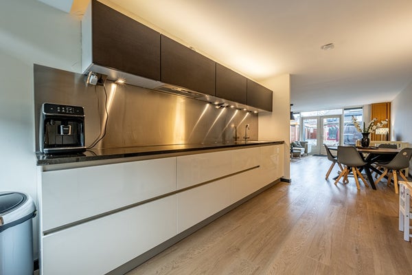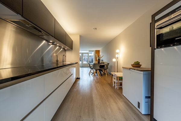 De keuken is strak en modern uitgevoerd en vormt een fijne verbinding met de woonkamer. De Tieleman-keuken (ca. 2018) is van alle gemakken voorzien en beschikt over een combi-oven, koelkast, vriezer, inductiekookplaat, afzuigkap en vaatwasser. Of je nu snel iets op tafel zet of uitgebreid wilt koken: deze keuken nodigt uit tot lange avonden tafelen, borrelen en genieten.