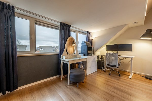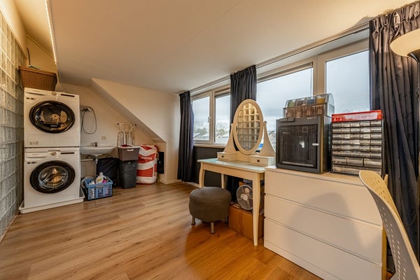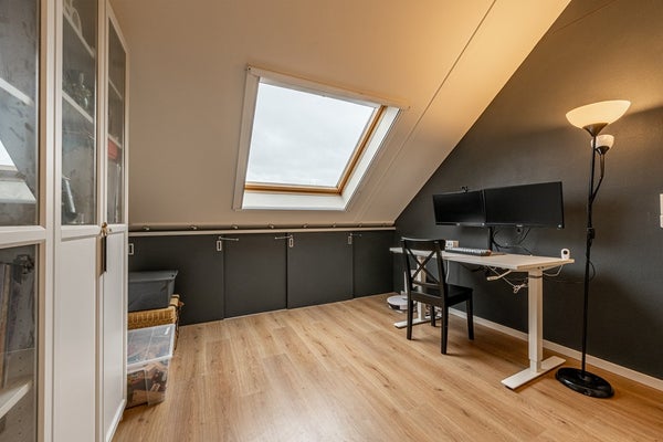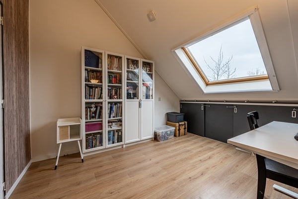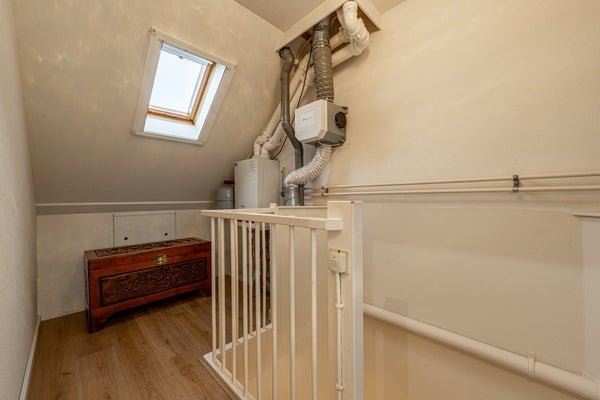 De zolderverdieping voelt als een volwaardige extra woonlaag. Op de overloop vind je de opstelplaats van de cv-ketel en ventilatie-unit. Dankzij de dakkapel geniet je hier van veel licht en ruimte.