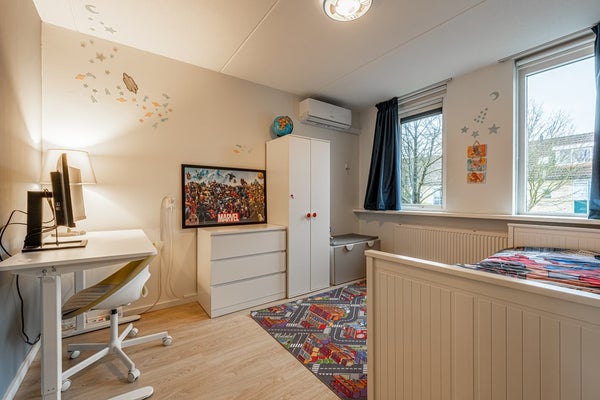 Op de eerste verdieping kom je op de overloop die toegang geeft tot meerdere comfortabele slaapkamers. Alle kamers zijn prettig van formaat, beschikken over fijne lichtinval en zijn eenvoudig in te richten naar jouw wensen. Of je nu extra slaapkamers zoekt, een thuiswerkplek of een hobbyruimte: hier kan het allemaal.