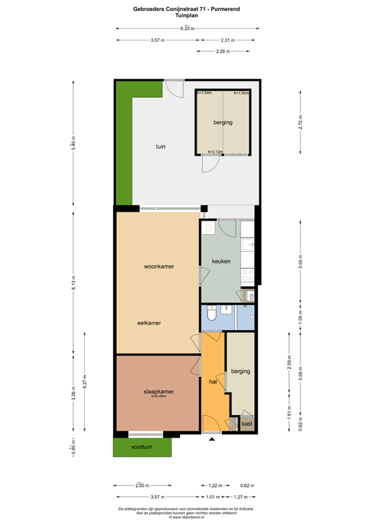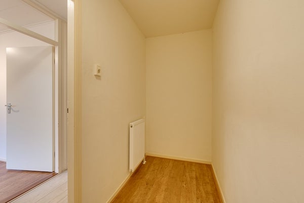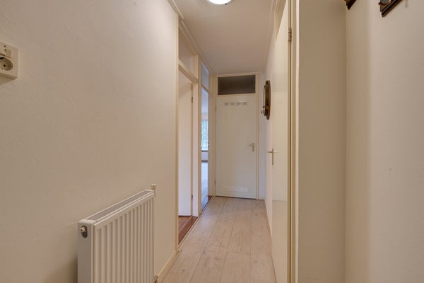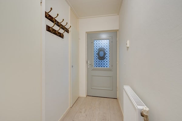 Via de gemeenschappelijke binnentuin bereik je, via de gezamenlijke entree, de woning. Je komt binnen in de ruime hal met meterkast. Vanuit de hal heb je toegang tot de ruime berging, de slaapkamer, de badkamer en de woonkamer.
