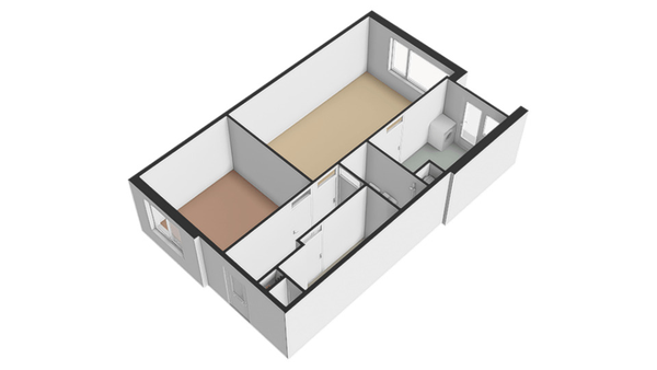 - De geschakelde woning heeft een woonoppervlakte van 56 m² en beschikt over 2 kamers, waarvan 1 slaapkamer;