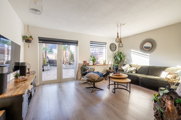 - De tussenwoning heeft een woonoppervlakte van 100 m² en beschikt over 4 kamers, waarvan 3 slaapkamers;