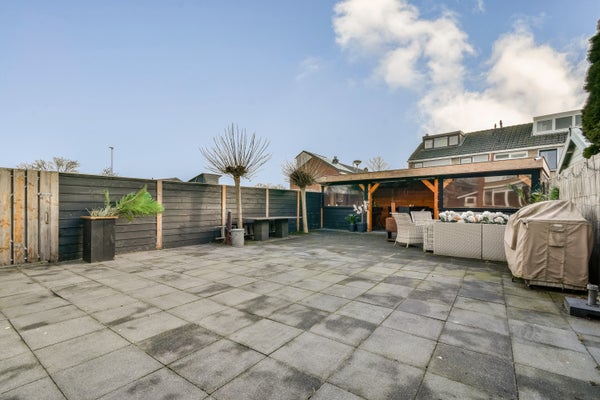 Deze hoekwoning aan de Marathonstraat 56 in Purmerend biedt een instapklaar thuis met een ruime, zonnige tuin op het zuiden van circa 95 m². De begane grond heeft een mooie visgraat eikenhouten vloer en veel natuurlijk licht door het extra zijraam. De semi-open keuken is voorzien van verschillende inbouwapparatuur. De achtertuin beschikt over een luxueuze overkapping met bar en jacuzzi. Op de eerste verdieping vind je twee ruime slaapkamers en een moderne badkamer. De zolder, bereikbaar via een vaste trap, kan als werk- of hobbyruimte dienen en biedt potentieel voor een extra slaapkamer. De woning is goed onderhouden, heeft een gevel die recent is geschilderd en is gelegen in een fijne, rustige woonwijk met alle nodige voorzieningen in de buurt.