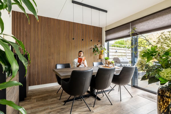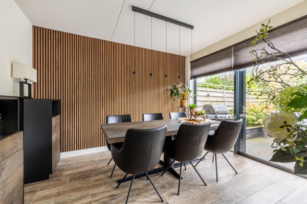 De mooie achtertuin, met automatische buitenverlichting en elektrische zonwering, nodigt uit om te ontspannen. Dit huis, ideaal voor elk gezin, heeft alles voor een fijn thuis.