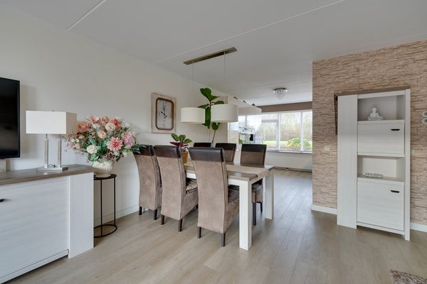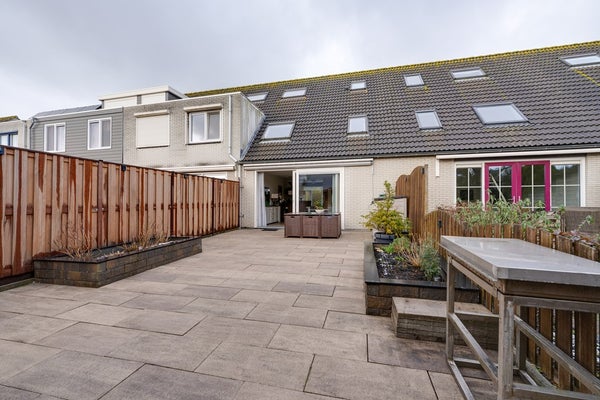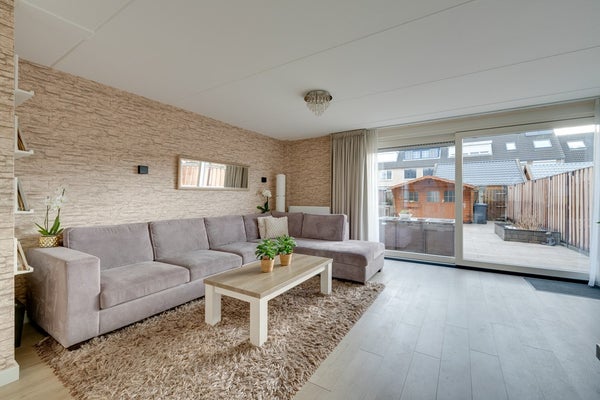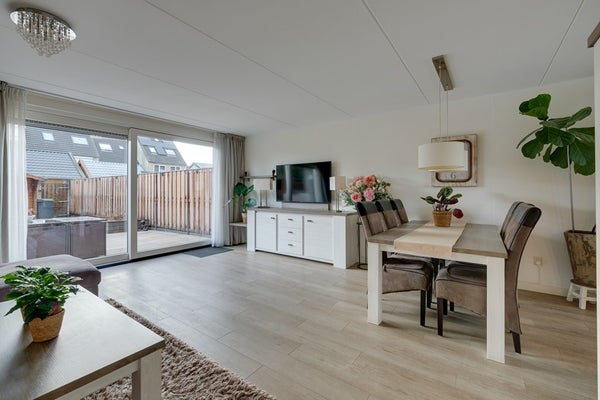 Via de woonkamer bereik je de riante achtertuin op het zuidoosten. Door de diepte van de tuin is er altijd wel een plek in de zon of schaduw te vinden.