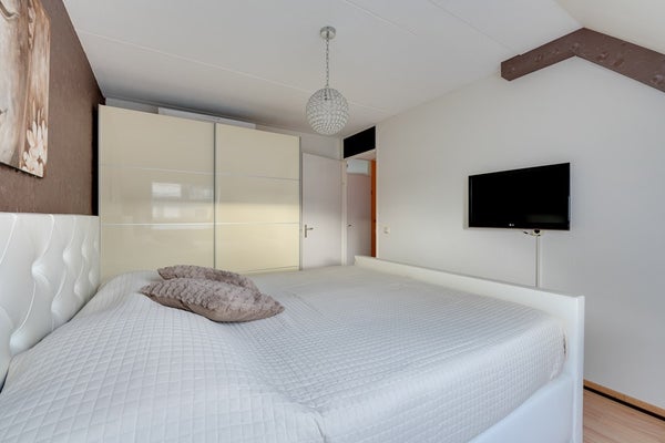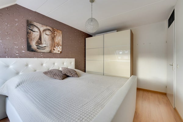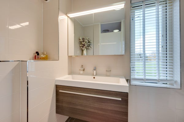 Op de eerste verdieping tref je drie goed bemeten slaapkamers en een fraaie badkamer. De badkamer uit 2018 is compleet uitgevoerd met een inloopdouche, wastafelmeubel en tweede toilet. De afwerking is stijlvol en tijdloos, waardoor je hier direct van kunt genieten zonder te hoeven verbouwen. De kamers beschikken over een nette laminaatvloer.