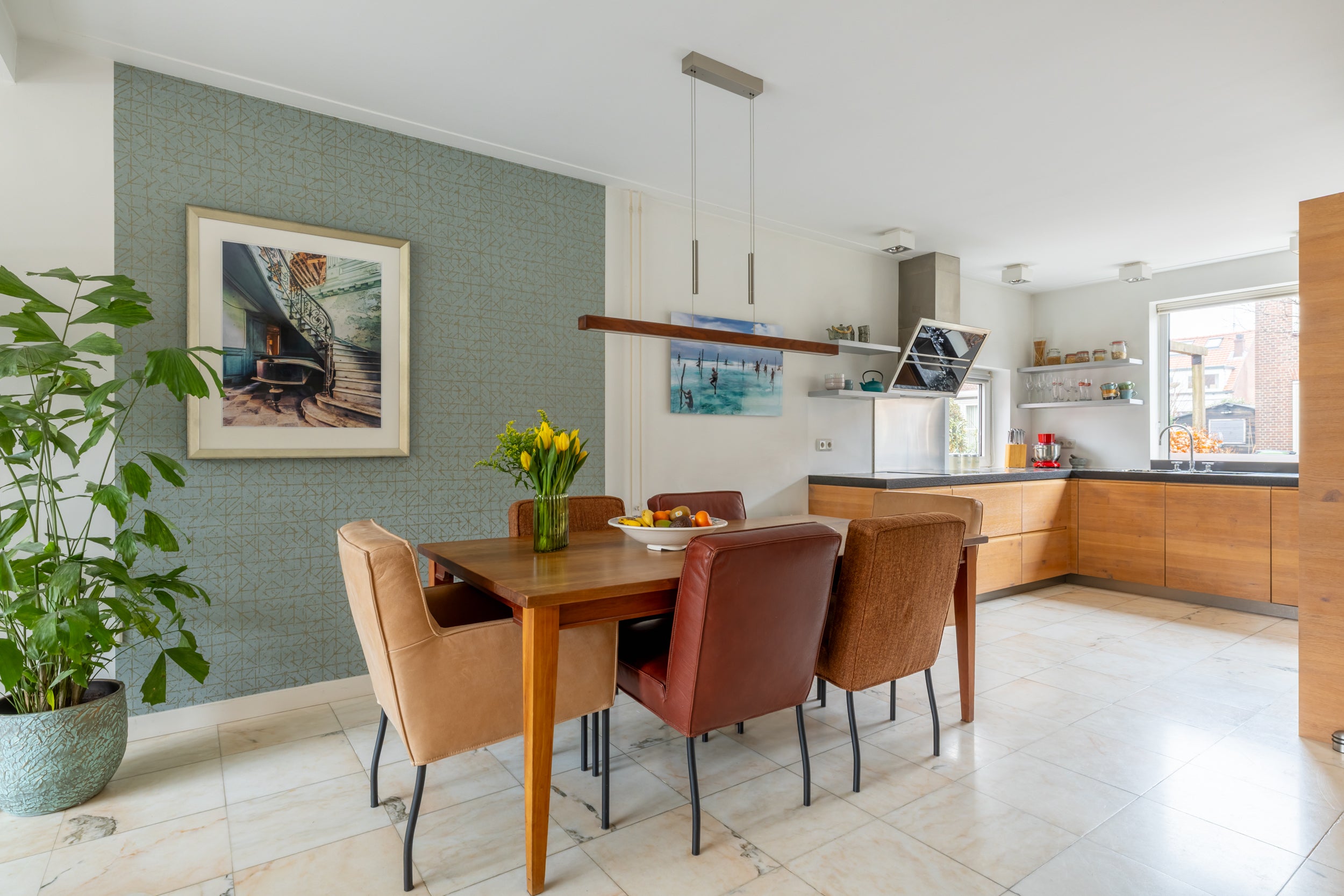- De tussenwoning heeft een woonoppervlakte van 121 m² en beschikt over 4 kamers, waarvan 3 slaapkamers;