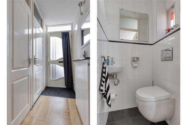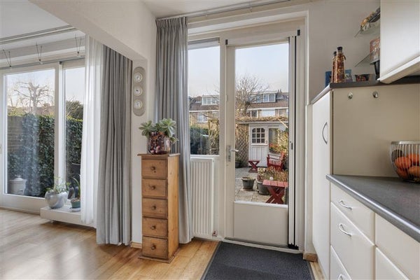 Bij binnenkomst valt u meteen de ruime hal met meterkast en het verzorgde toilet op. Vanuit de hal komt u in de lichte woonkamer, die dankzij een grote schuifpui aan de achterzijde volop daglicht toelaat en direct toegang biedt tot de prachtige tuin. Deze logische indeling zorgt voor een open en aangename leefruimte, met aan de voorzijde een gezellige zithoek en aan de achterzijde de eetkamer die centraal staat ten opzichte van de keuken. De woonkamer is verzorgd afgewerkt met een lichte vloer en wandafwerking.