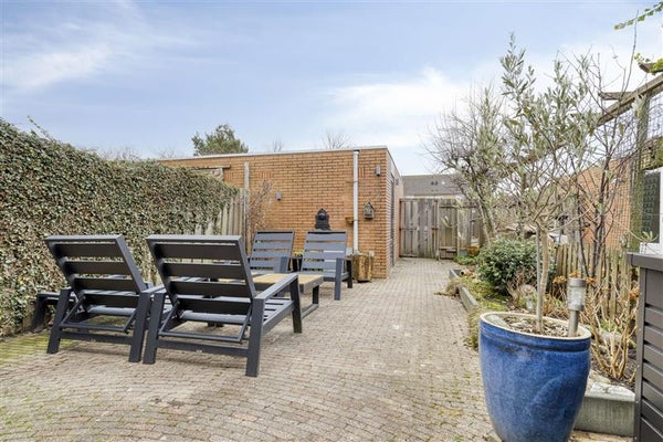 De achtertuin is gelegen op het zuidoosten, waardoor je hier heerlijk van het buitenleven kunt genieten. Of je nu ’s ochtends van de eerste zonnestralen wilt genieten of ’s avonds nog wilt ontspannen in het zonnetje, dit is de ideale plek. Bovendien is er een handige achterom aanwezig, wat zorgt voor extra gemak. Daarnaast is er op de bovenste verdieping een dakterras aanwezig.