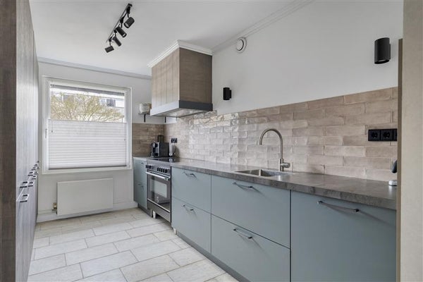 De moderne open keuken is strak uitgevoerd en van alle gemakken voorzien. De praktische indeling biedt veel werk- en opbergruimte, waardoor je hier met plezier staat te koken. Alles is klaar voor gebruik – uitpakken en genieten maar.