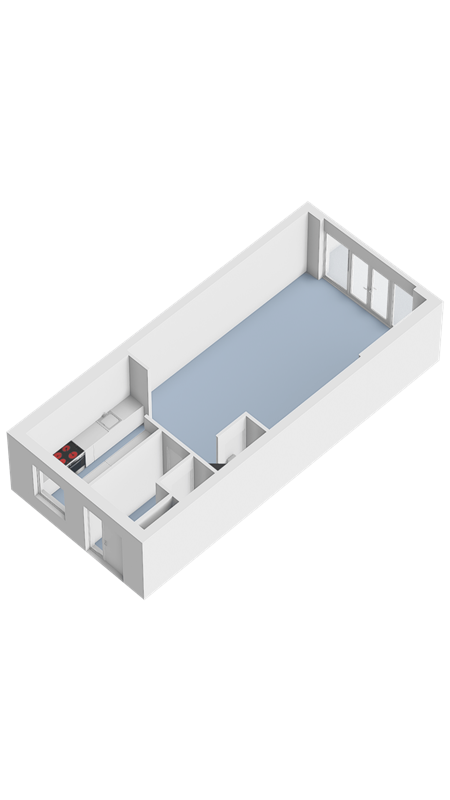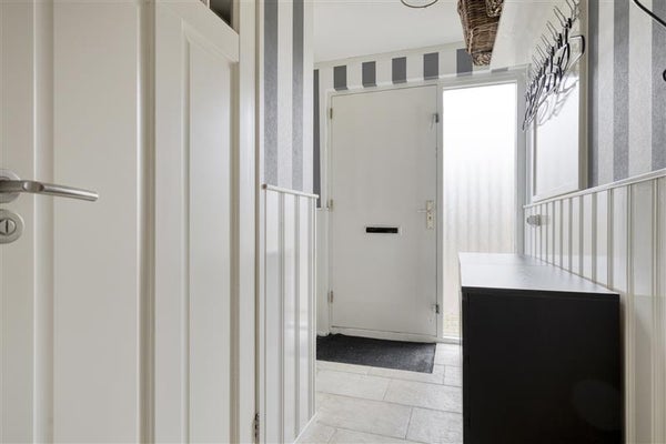 Je komt binnen in de hal met toegang tot het toilet en de meterkast. Vanuit hier loop je direct door naar de woonkamer.