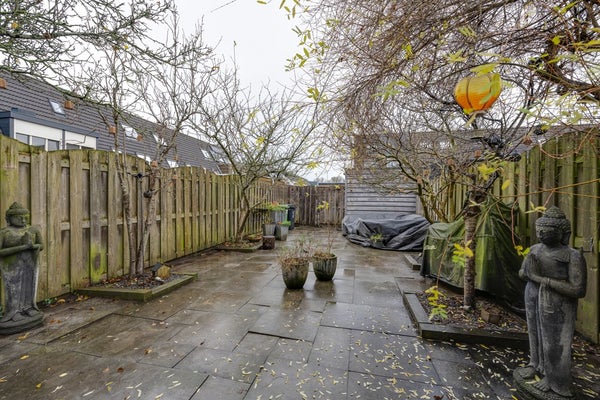 De diepe achtertuin is gelegen op het noorden en biedt veel privacy. Door de lengte van de tuin zijn er meerdere zitmogelijkheden, zowel in de zon als in de schaduw. De tuin is verzorgd aangelegd en vormt een fijne buitenruimte om te ontspannen of gezellig samen te zijn.