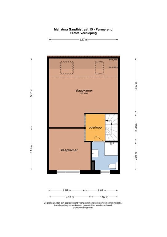 - Aanwezig (71 m², gelegen op het noorden)