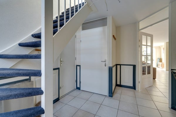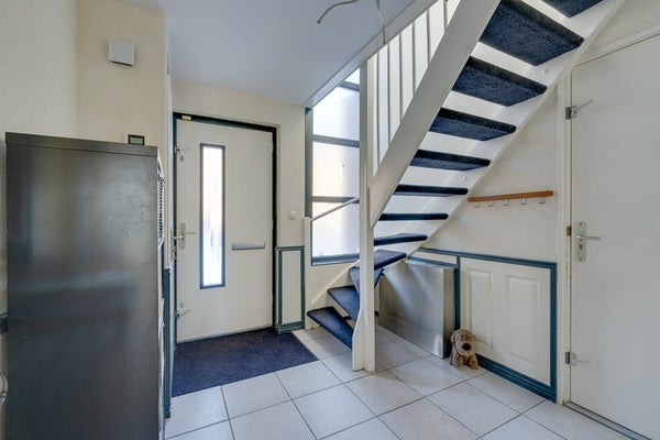 Via de ruime oprit bereik je de entree van de woning. In de hal bevinden zich het toilet, de meterkast, toegang tot de garage en de trapopgang.