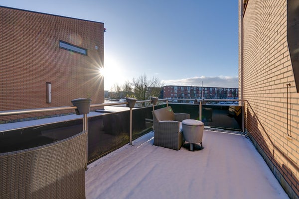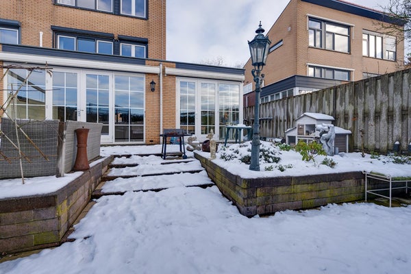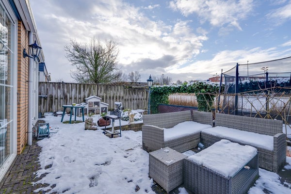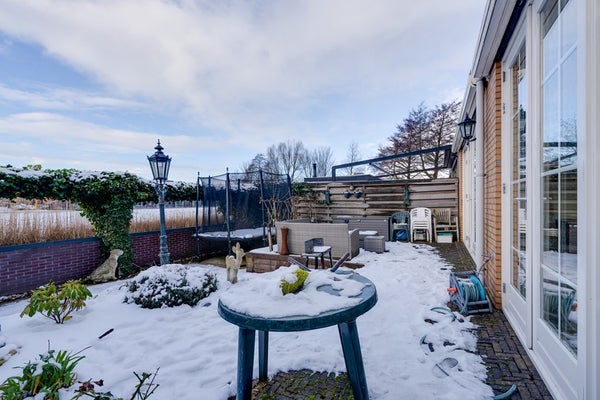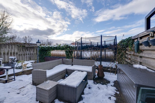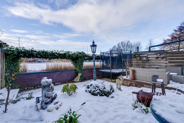 De zonnige achtertuin gelegen op het westen en aan het water is een absolute eyecatcher. Hier geniet je van rust, privacy en een vrij uitzicht, met volop mogelijkheden om te ontspannen, te spelen of te varen. De tuin is onderhoudsvriendelijk aangelegd en biedt diverse zitplekken. Je kunt hier elke dag de zon zien ondergaan! Daarnaast beschikt de woning over een dakterras, een heerlijke extra buitenruimte waar je tot in de avond van de zon kunt genieten.