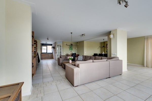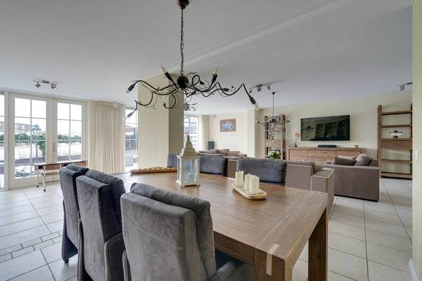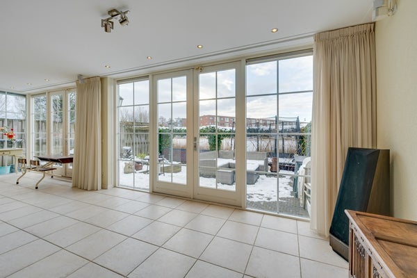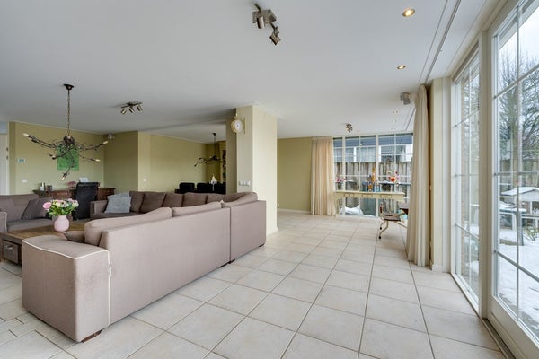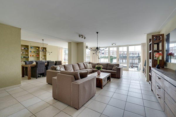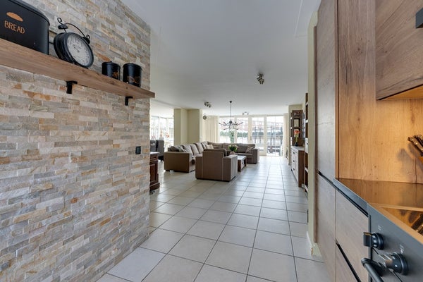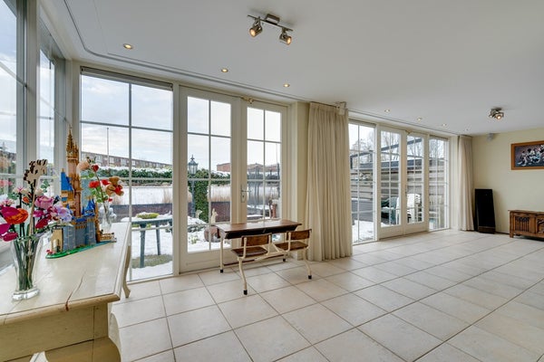 De royale uitgebouwde en lichte woonkamer vormt het hart van het huis en biedt dankzij de grote raampartijen een prachtig uitzicht op de tuin en het water. De vloerverwarming op de begane grond zorgt voor optimaal wooncomfort en een fijne afwerking zonder radiatoren.