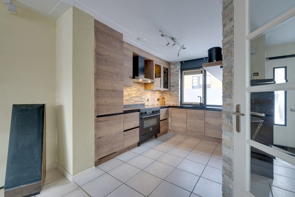 De nieuwe open hoekkeuken sluit naadloos aan op de woonkamer en biedt volop werk- en kastruimte, ideaal voor gezellige familiemomenten of etentjes met vrienden. De keuken is voorzien van een inductiefornuis met bakoven, vaatwasser en koel-vriescombinatie. Vanuit de woonkamer is er, via openslaande deuren, directe toegang tot de tuin. De geïsoleerde garage is zowel van buiten als binnendoor bereikbaar en is perfect voor het stallen van fietsen, opslag of het creëren van een hobby- of werkruimte.