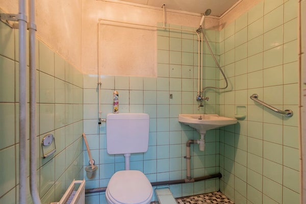 De badkamer ligt op de begane grond en is voorzien van douche en wastafel.
