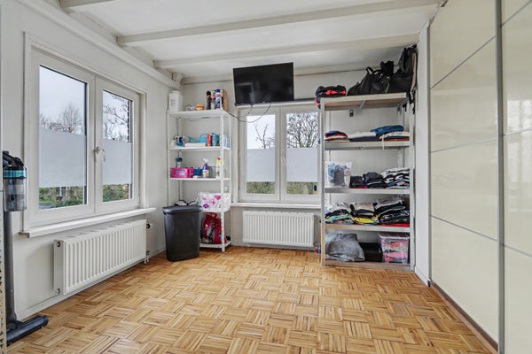 • Slaapkamer 2: parketvloer, behang, kunststof kozijn met dubbel glas