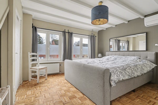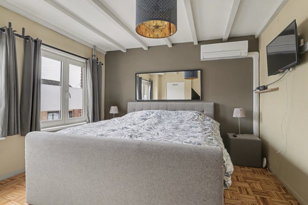 • Slaapkamer 1: parketvloer, behang, kunststof kozijn met dubbel glas, voorzien van airco