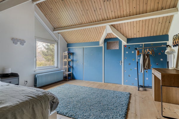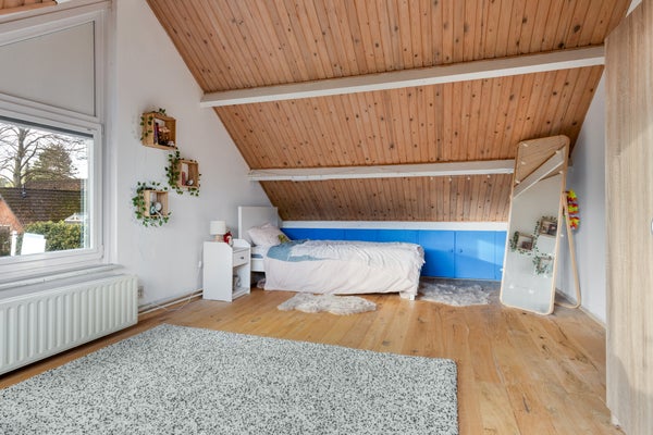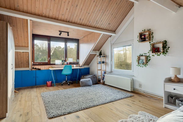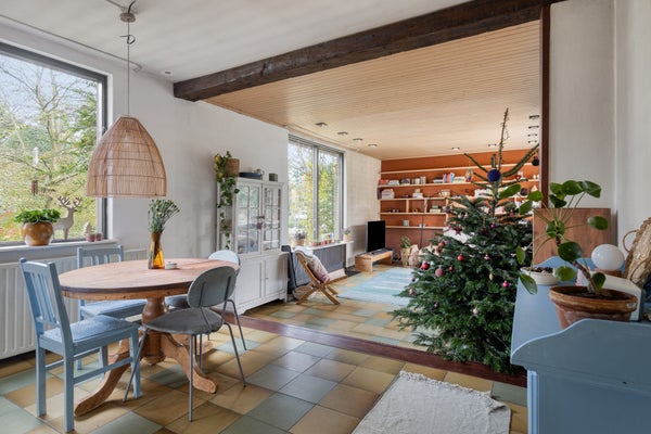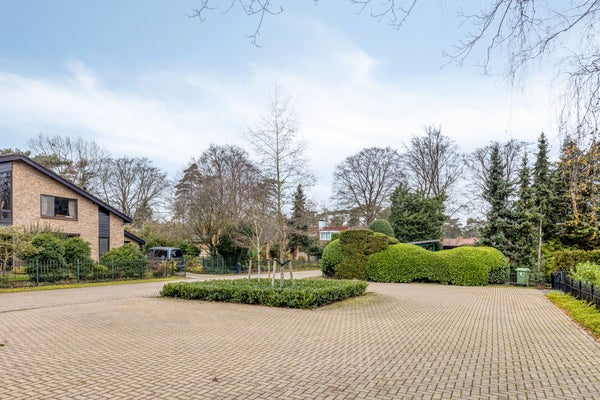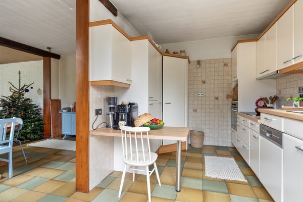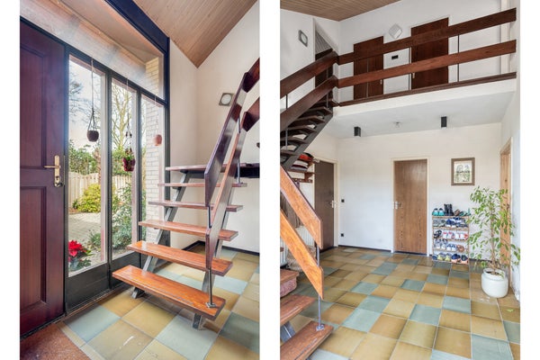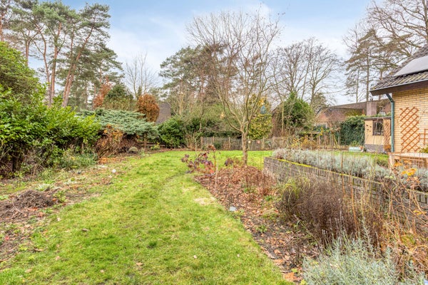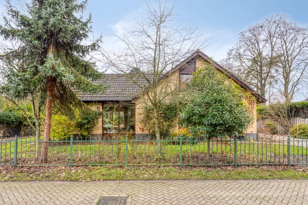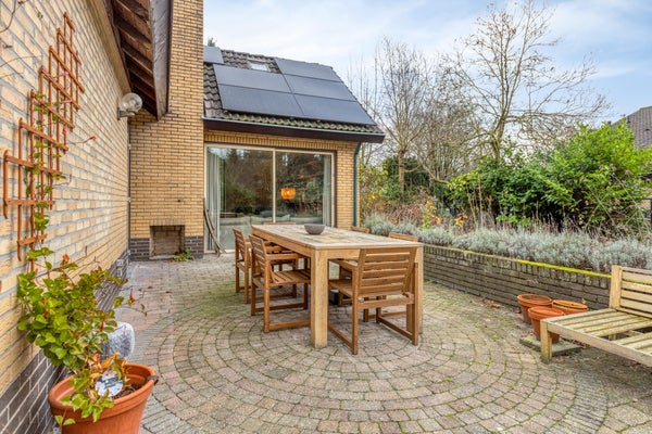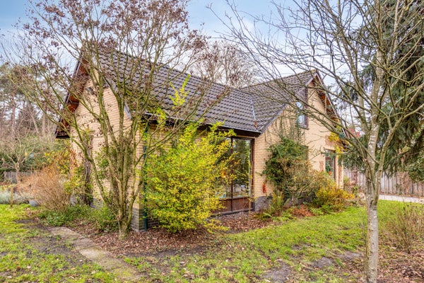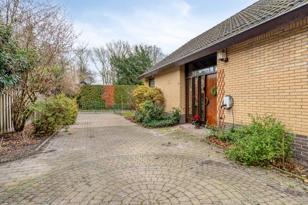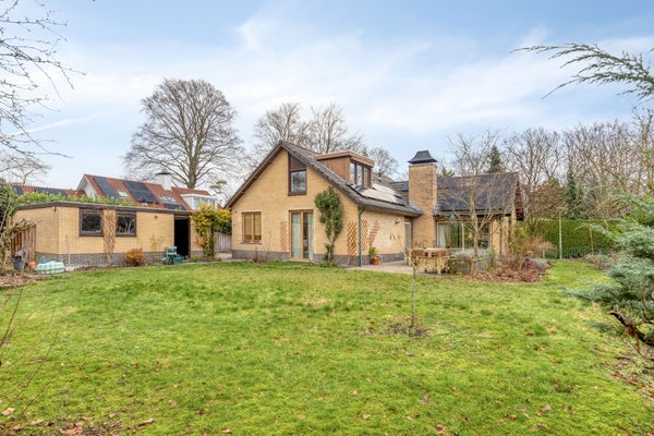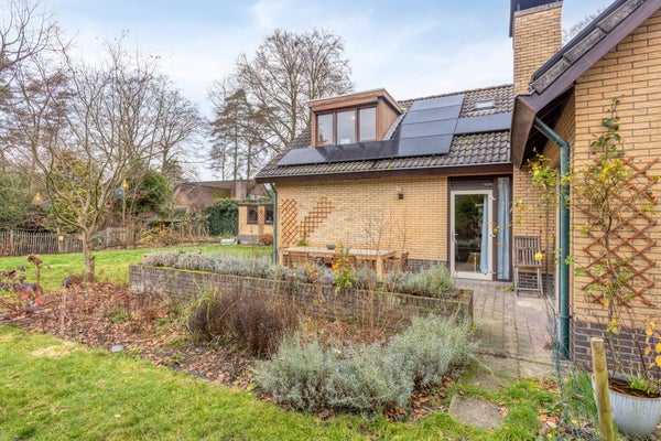 In een rustige, bosrijke omgeving staat deze vrijstaande semi-bungalow met een woonoppervlak van 169 m² en een perceel van 1002 m². De woning, gebouwd in 1973, bevat vier slaapkamers en twee badkamers die levensloopbestendig zijn. De hal biedt toegang tot de keuken en woonkamer, waar een houtkachel en schuifpui naar de tuin zijn. De keuken kan gemoderniseerd worden en heeft toegang tot de tuin. De masterbedroom met badkamer en suite biedt directe toegang naar buiten. Op de eerste verdieping zijn twee slaapkamers en een tweede badkamer, met een dakkapel en bergruimte. Buiten omringt een rustige tuin de woning, met diverse borders en een terras. De dubbele garage heeft ruimte voor twee auto’s. Dit is een energiezuinige woning met 14 zonnepanelen en laadpaal.