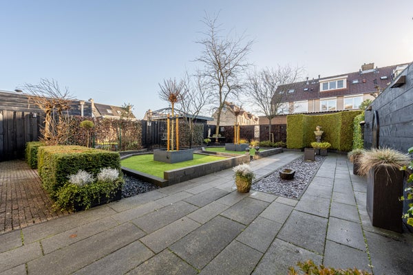 Er is volop ruimte voor een royale eettafel en meerdere zitplekken, ideaal om te genieten van zomerse dagen. De tuin is tevens bereikbaar via een praktische zij-ingang.