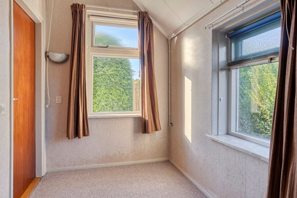 Parkeer comfortabel op uw eigen royale oprit met ruimte voor maar liefst vijf auto’s. De entree bevindt zich aan de achterzijde van de woning, maar de meest gebruikte ingang ligt praktisch aan de opritzijde. U wordt verwelkomd in een ruime, lichte hal met meterkast en toilet. Aan de voorzijde bevindt zich de woonkamer met sfeervolle gashaard. Aansluitend ligt een extra kamer die naar wens kan dienen als slaapkamer, speelkamer of hobbyruimte, maar ook eenvoudig bij de woonkamer kan worden betrokken. Vanuit de hal bereikt u de gesloten keuken aan de achterzijde van de woning met berg/voorraadkast. Via een tussenhal is er toegang tot de badkamer met douche en wastafel, evenals een bijkeuken.