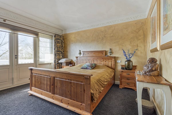 Bij bedrijventerrein De Kolk in Ravenstein staat een unieke woning met een woonoppervlakte van 293 m² en een bijgebouw van 298 m², ideaal voor wonen en ondernemingen in de categorieën 1, 2 en 3. De villa, gebouwd in 2008, straalt luxe uit met details zoals hoge plafonds en sierlijke ornamenten. De begane grond biedt een ruime U-vormige woonkamer, een eetkamer met toegang tot de privacyvolle achtertuin, en een woonkeuken met Boretti fornuis. Boven zijn er 4 slaapkamers en een moderne badkamer met vloerverwarming. Het souterrain van 90 m² bevat een garage en een grote multifunctionele ruimte. Buiten is er een verzorgde tuin met terras. Het perceel biedt uitbreidingsmogelijkheden voor het bedrijf. De woning is goed bereikbaar en heeft voldoende parkeergelegenheid op eigen terrein.