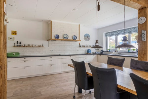 Aan de rand van het centrum van Renesse ligt deze ruime villa, grotendeels nieuw gebouwd met extra mogelijkheden. Gelegen op een perceel van 2380 m2, biedt het huis circa 330 m2 woonoppervlak, waaronder het nieuwe gedeelte van 243 m2. De originele woning is in goede staat en behoudt authentieke elementen uit de jaren '30, met een oppervlakte van 87 m2. De nieuw gebouwde woonkeuken van 35 m2 heeft toegang tot een Douglashouten veranda, ideaal voor familie-diners. Op de begane grond bevinden zich een riante slaapkamer met badkamer en suite. De etage biedt nog drie slaapkamers en een tweede badkamer. Buiten is er voldoende parkeergelegenheid, een tuin rondom en een kantoorruimte van 6,50 x 5,20 meter. De villa is energiezuinig met 25 zonnepanelen en hoogwaardige isolatie.
