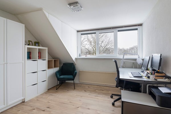 Middels de vaste trap bereik je de overloop van de eerste verdieping, die toegang geeft tot 3 slaapkamers, de badkamer en via een vlizotrap tot de zolderverdieping. De zolder, waar de cv-installatie (Intergas, 2022) is gesitueerd, biedt voldoende bergruimte. De keurige badkamer is uitgevoerd in een neutrale, tijdloze kleurstelling en volledig betegeld. Dankzij de vloerverwarming en het nieuwe dakkapel is dit een comfortabele en verrassend ruime ruimte. De badkamer is voorzien van een wastafelmeubel met spiegel en verlichting, een inloopdouche en een toilet. De 2 slaapkamers aan de zijzijdes van de woning zijn uitgerust met een praktische kastenwand. De middelste slaapkamer beschikt over een vernieuwd dakkapel aan de voorzijde, wat zorgt voor extra ruimte en lichtinval. Tot slot biedt 1 van de slaapkamers bovendien toegang tot een leuk balkon met uitzicht op de tuin.