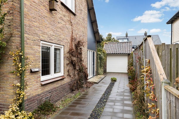 De groene tuin vormt samen met de garage en de royale oprit een mooie aanvulling op de woning. Met een ruim gazon, een bestraat terras en volop beplanting geniet je hier van veel privacy en een fijne buitenruimte. De stenen garage biedt volop mogelijkheden, bijvoorbeeld voor het stallen van een auto, fietsen of extra opslag. Daarnaast is er op de ruime oprit plaats voor maar liefst drie auto’s op eigen terrein.