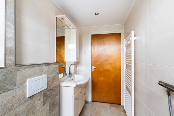 Via een vaste trap bereik je de overloop van de 1e verdieping. Vanaf hier heb je toegang tot 4 slaapkamers en de badkamer. Aan de achterzijde van de woning is over de volledige breedte een dakkapel geplaatst. Hierdoor profiteren 2 slaapkamers en de badkamer van extra ruimte en een prettige hoeveelheid daglicht. De badkamer is uitgerust met een douche, toilet en een wastafelmeubel. Van de 4 slaapkamers bevindt de royale ouderslaapkamer zich aan de voorzijde van de woning. Deze kamer beschikt bovendien over een eigen wastafel. Tot slot biedt de overloop via een vaste trap toegang tot de zolderverdieping.