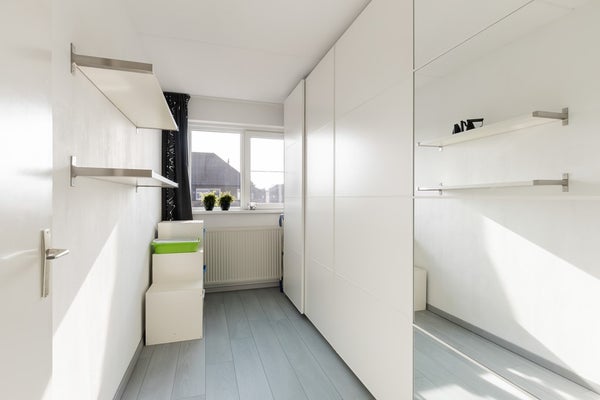 Via de trapopgang bereik je de overloop van de eerste verdieping, die toegang geeft tot drie slaapkamers en de badkamer. De moderne badkamer, vernieuwd in 2020 en voorzien van ledstrips, beschikt over een inloopdouche, een dubbel wastafelmeubel, een wandcloset en designradiatoren. Tevens zijn hier de aansluitingen voor de wasmachine en droger gesitueerd. Naast de badkamer bevindt zich een slaapkamer. Aan de achterzijde van de woning zijn nog twee slaapkamers gelegen, waarvan de ouderslaapkamer is voorzien van airconditioning (2023).