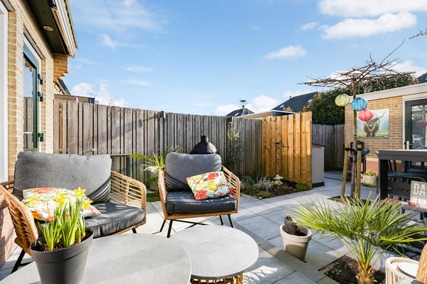 De fraai aangelegde achtertuin beschikt onder andere over een bestraat terras, een stenen berging en een erfafscheiding middels houten schuttingen. Dankzij de ligging op het zuiden kun je hier volop genieten van de zon. Op het dak van de woning zijn bovendien 12 zonnepanelen geplaatst. Via een achterom is de tuin eveneens bereikbaar. Tot slot is er in de wijk voldoende parkeer- en speelgelegenheid aanwezig.