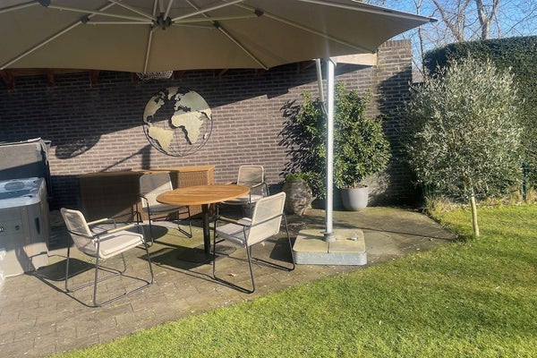 Tuin rondom de woning met achtertuin en meerdere terrassen op het zuiden. Er is ook een overdekt terras waar u tot ’s avonds heerlijk kunt genieten van de beschutting en van de zon. Het verwarmde zwembad in de tuin is fantastisch voor kinderen of om een verfrissende duik te nemen. Tevens is er een tuinhuis (12,8 m2) ideaal voor het opbergen van (elektrische) fietsen, strandspullen of tuinmeubelen. Aan de voorkant van de woning is er parkeerplaats voor meerdere auto’s.