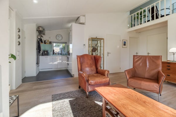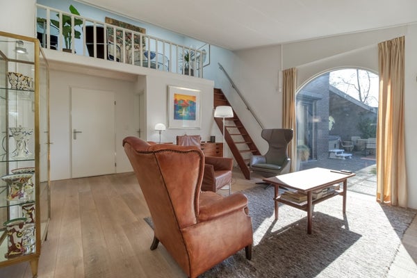 Bij binnenkomst in de woonkamer valt direct het vele licht op wat binnen schijnt door het grote raam in boogvorm die het huis ook extra sfeer geeft. Via een vaste trap in de woonkamer komt u op de vide. Doordat het dak is opgehoogd kan de vide als volwaardige ruimte beschouwd worden, ideaal als werkkamer of hobbyruimte.