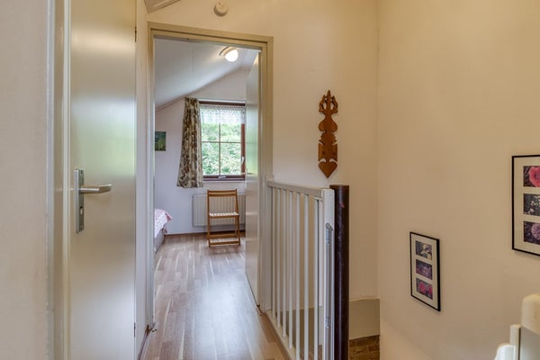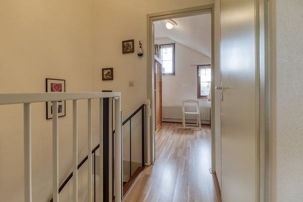Overloop met toegang tot twee slaapkamers. Tussen de twee slaapkamers is er een 2e toilet en wastafel.