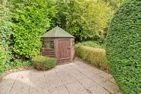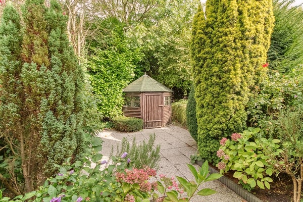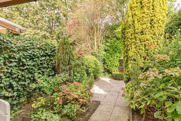 Achtertuin op het noorden met gedeeltelijk overdekt terras en tuinhuis ideaal voor het opbergen van strandspullen en (tuin)gereedschap. De tuin is voorzien en omringd door veel groen en bomen waardoor er volop privacy is. De voortuin is gelegen op het zuiden en heeft eveneens een overdekt terras waar het aangenaam zitten is in het zonnetje. Op eigen terrein is er parkeerplaats voor 2 auto’s.