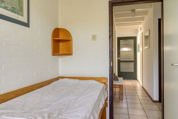 Er zijn 3 slaapkamers waarvan twee er via de hal te bereiken zijn en één via de woonkamer. De badkamer is voorzien van douche, wastafel en toilet. Apart tweede toilet met fonteintje. In de berging bevindt zich de cv-ketel, wasmachine en is er voldoende ruimte voor het opbergen van huishoudelijke spullen.